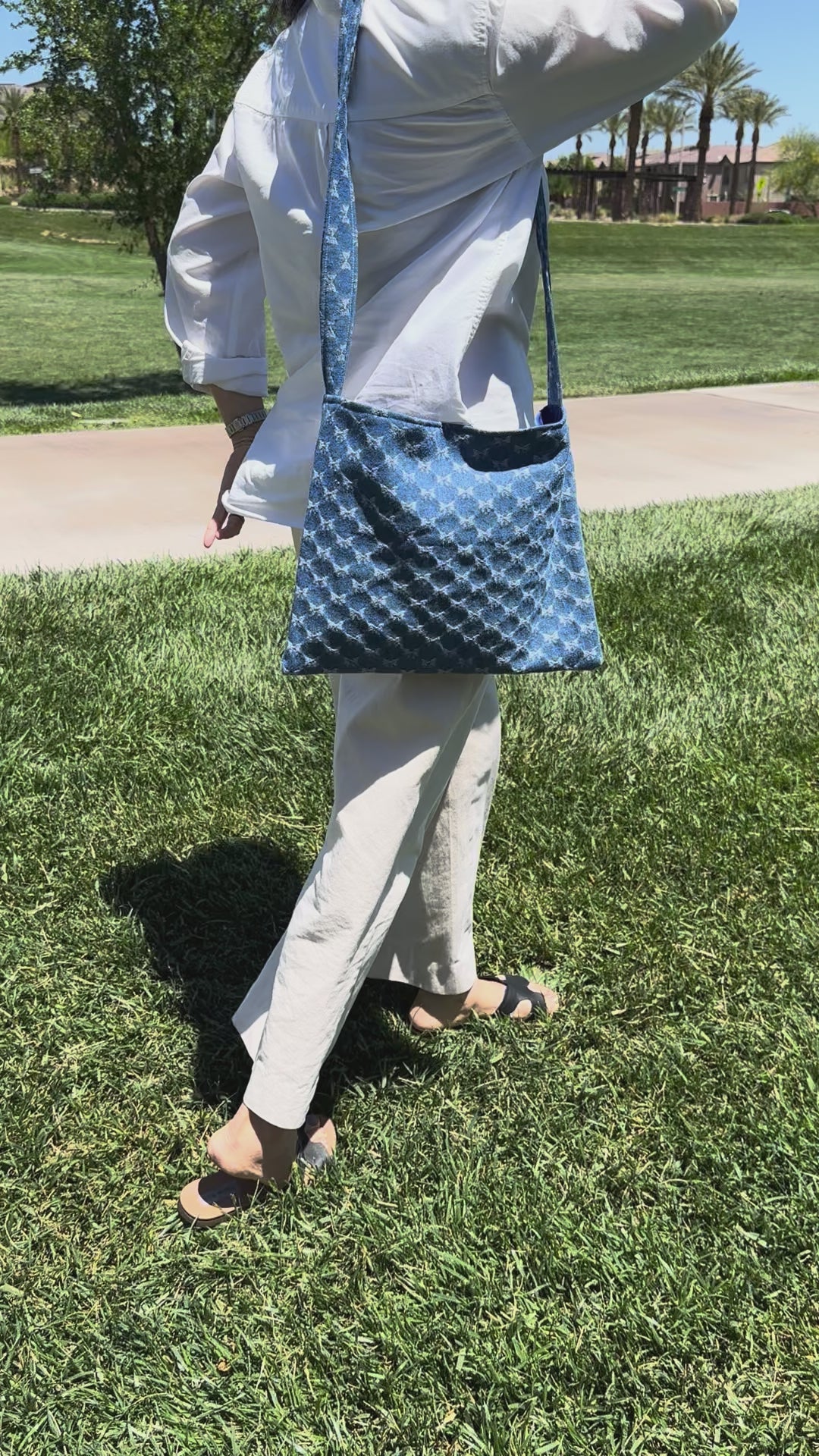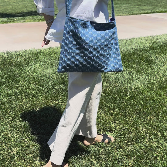 Our patterned blue denim bag is the perfect blend of casual comfort and chic design. Ideal for your everyday adventures, from a stroll in the park to your daily errands. The wide, comfortable strap allows for easy cross-body or shoulder wear, making it a stylish and essential grab-and-go piece.