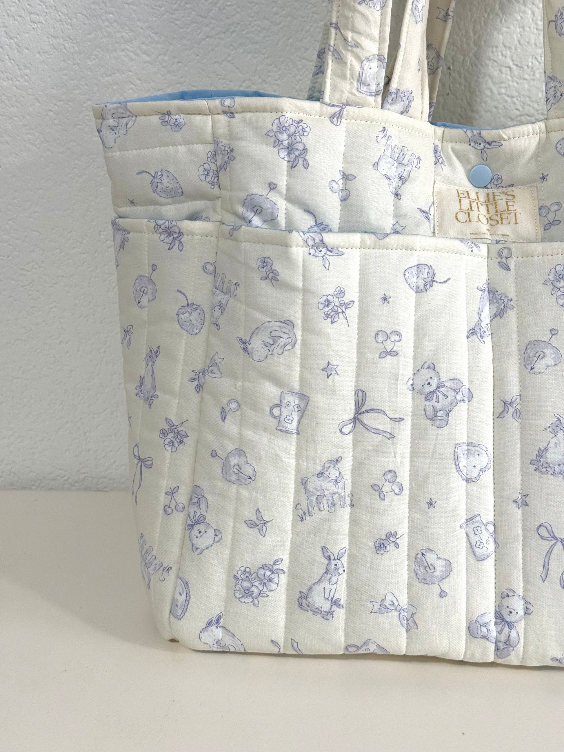 Vertical Channel Quilting: Like the floral version, this bag uses vertical linear stitching, which gives it a padded, "puffy" structure that holds its shape while remaining soft to the touch.